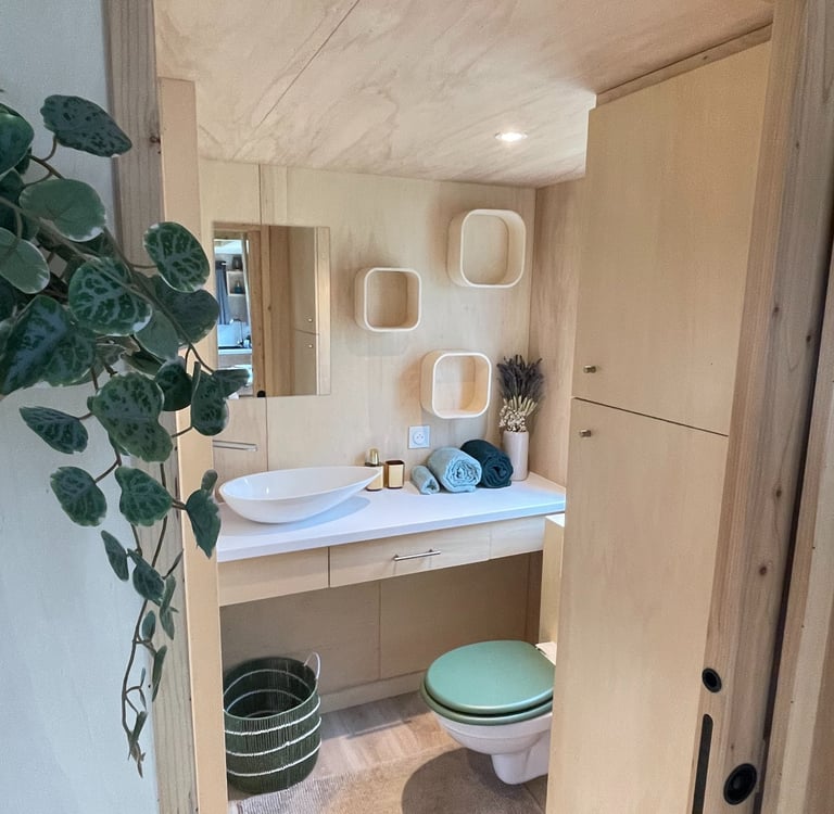 Aujourd’hui, nous mettons nos expériences et nos valeurs au service de ce lieu, pour vous proposer une parenthèse simple, paisible et pleine de charme, dans notre tiny house soigneusement aménagée.